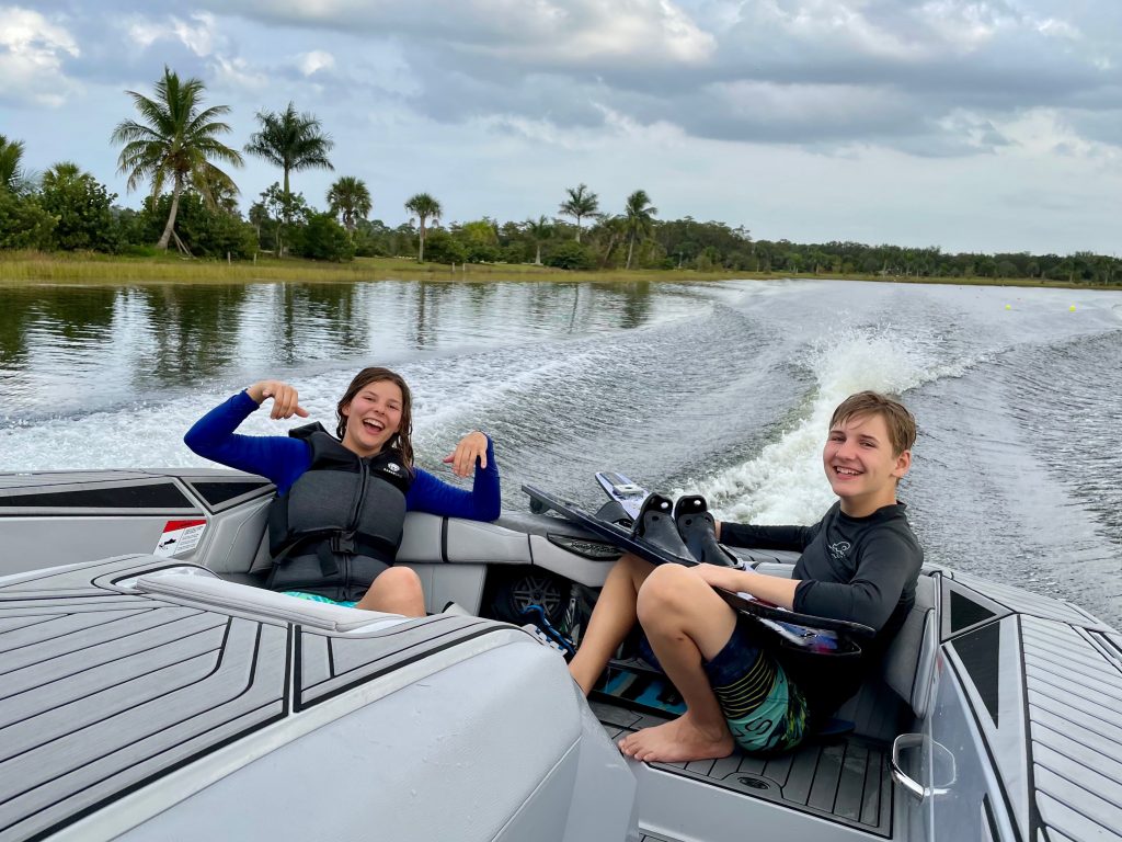 At Hobe Lake Ski Club, our mission is “waterskiing the way it should be.” To us, this means providing a welcoming atmosphere, a pristine private lake, a brand-new Ski Nautique boat, and professional coaching for skiers of all ages and abilities. We teach new skiers how to get up on two skis for the first time, introduce skiers to the slalom course, and provide coaching for advanced skiers.
